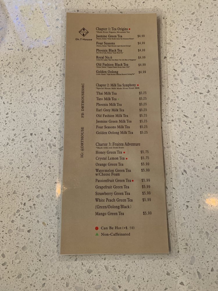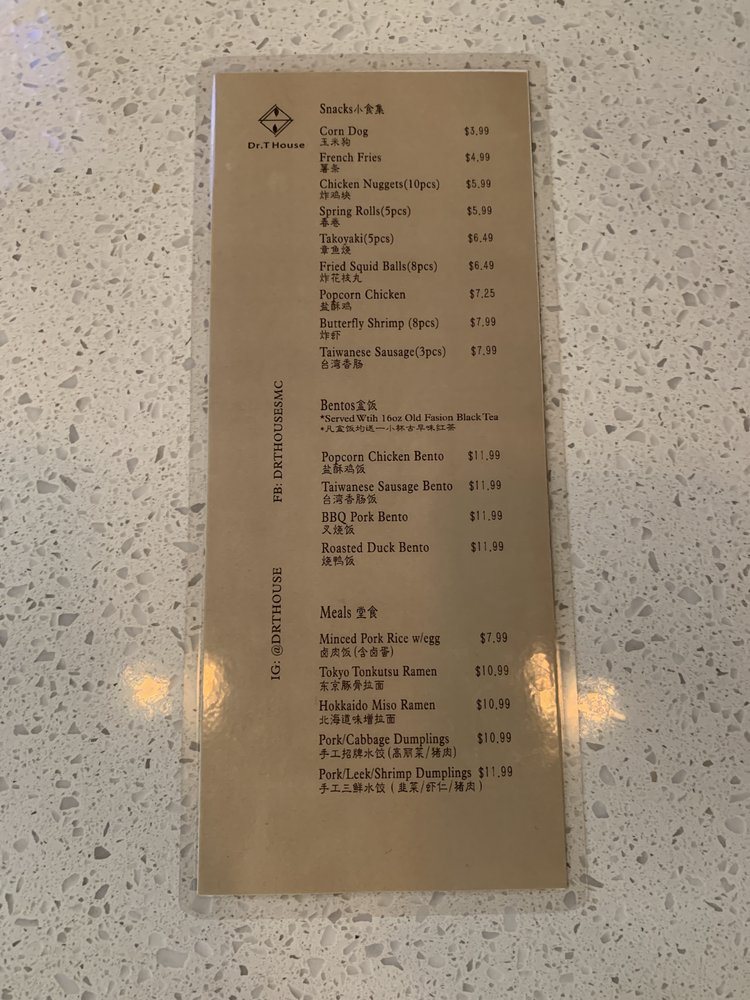 Dr T House Menu